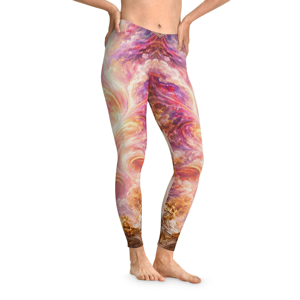 Galaxy Bloom Leggings — Pink Orange Abstract All-Over Print Yoga Leggings