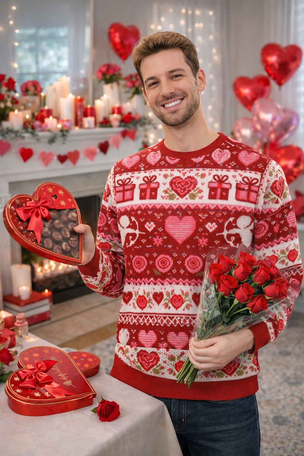 Valentine’s Day x Christmas Knit Sweater — Cozy Nordic Hearts Holiday Sweatshirt